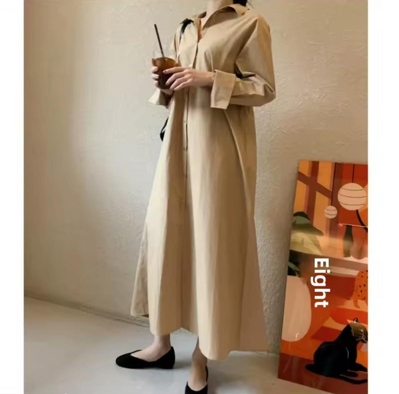 Loose Long Sleeve Shirt Dress Korean Style Single Button Simple Design Pocket Detail Women's Fashion Casual Dress.