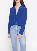 solid color silk shirt new sand washed mulberry silk long sleeve shirt ol women's silk blouse blue.