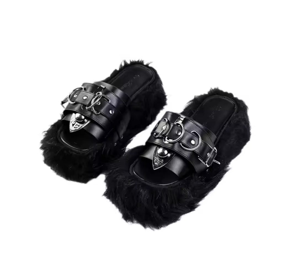 Punk Fur Metal Decor Round Toe Sandals 22823 | TUZZUT Qatar Online Shopping Order On WhatsApp Skip to content