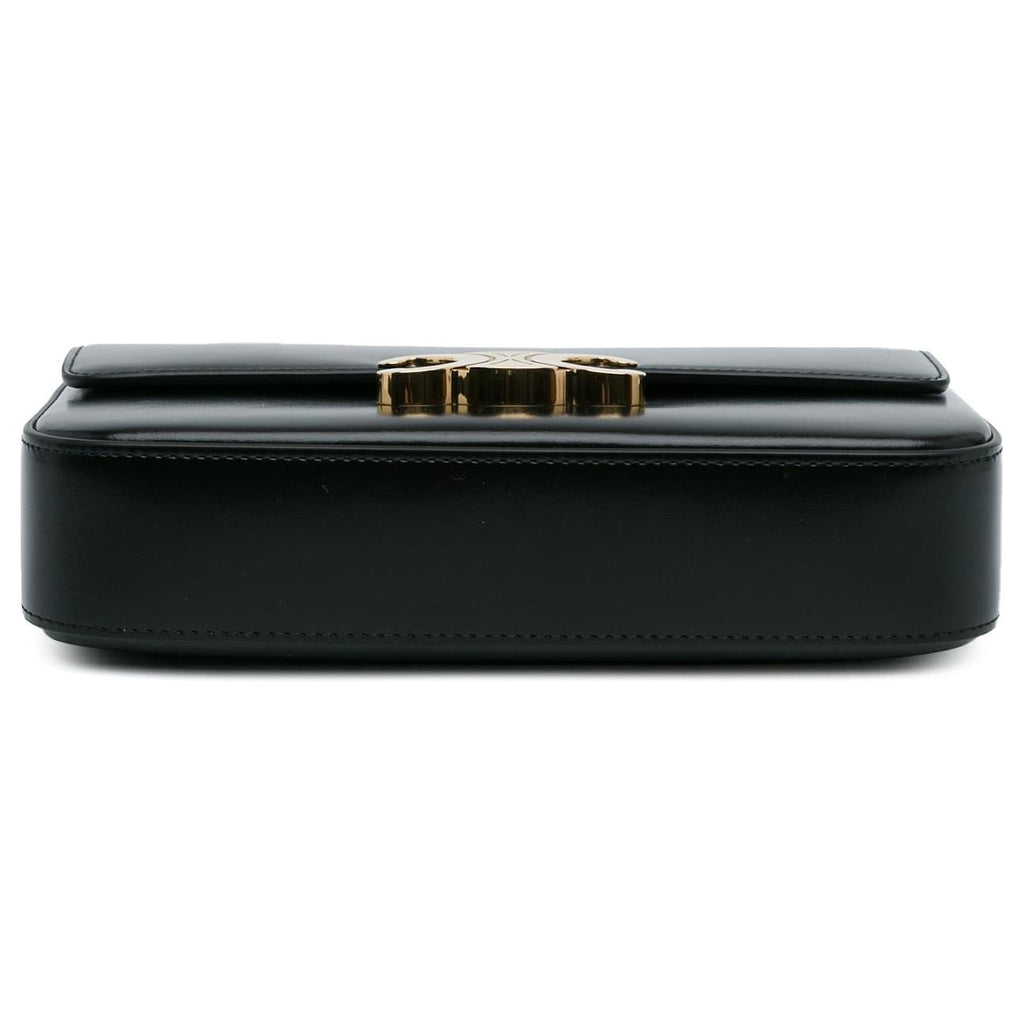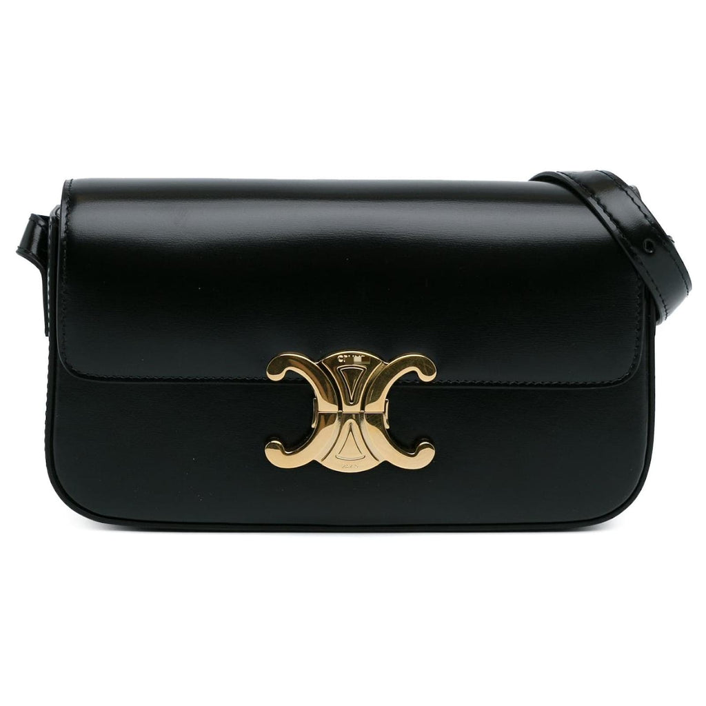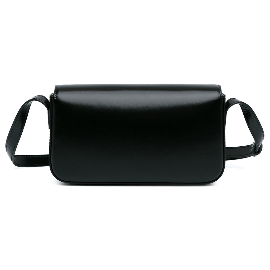 This shoulder bag features a leather body, an adjustable flat shoulder strap, a front flap with push-lock closure, and an interior slip pocket.