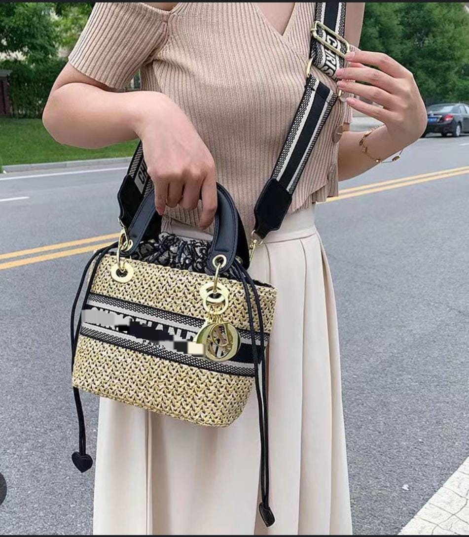 Manufacturer Sales Woven Straw Bag Fashionable Trendy Ladies Handbag Simple Contrast Color Shoulder Wide Strap Messenger.