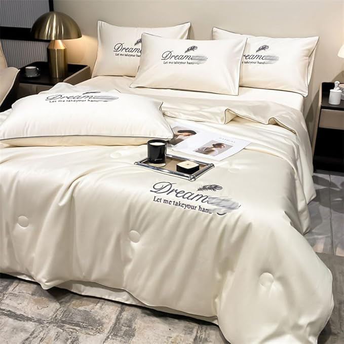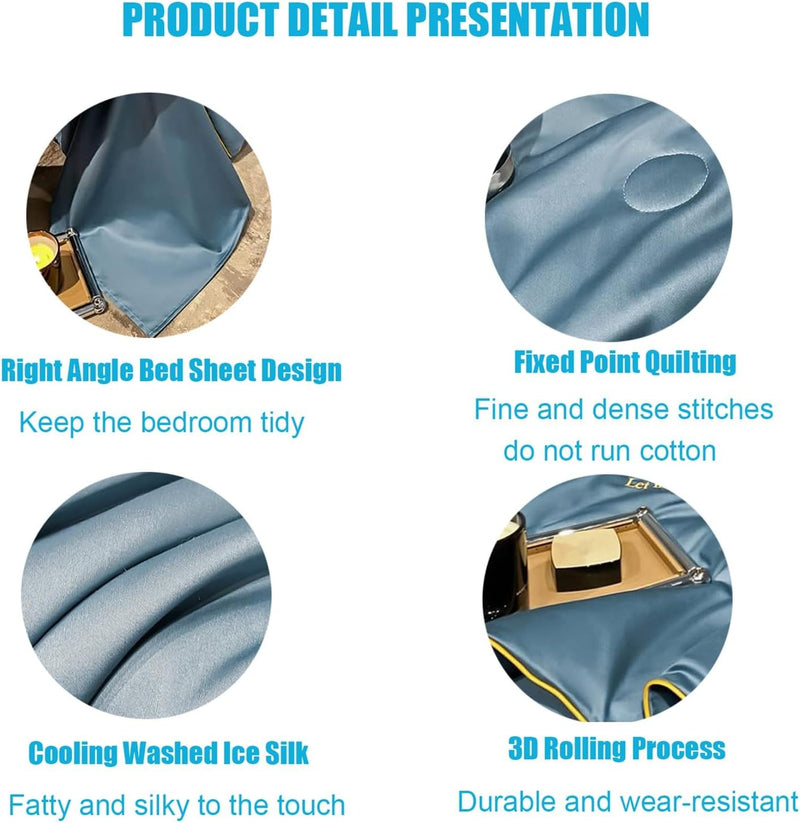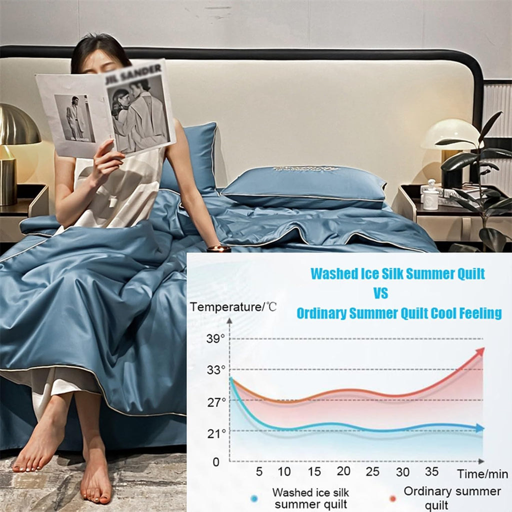 4 Piece Set Ice Silk Quilt Summer Comforter, Pillow Covers & Bed Sheet
