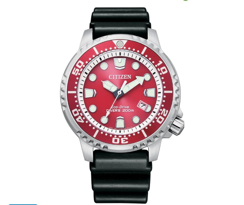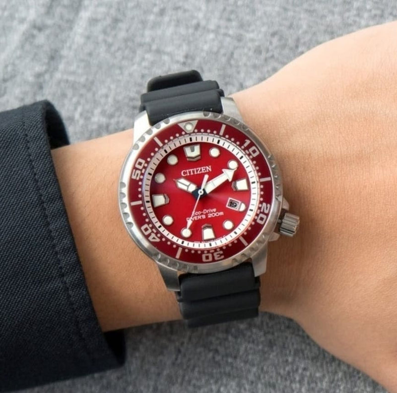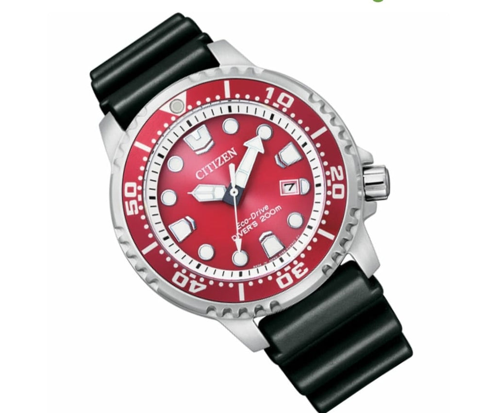 Eco-Drive Analog Men's Red Dial - Rubber Band Watch Powered by Light Promaster