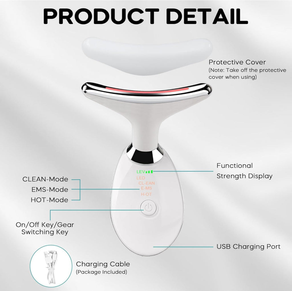 Neck face firming machine has mode memory function, with USB charging interface, which is safe and convenient to use, suitable for any skin type.
