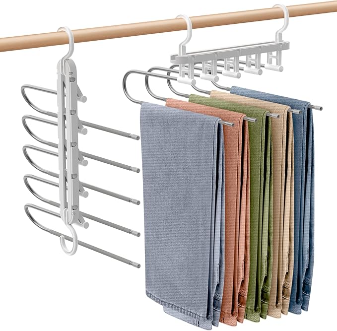 Housolution Trouser Hangers, Set of 4, Multi-functional Slack Hanger, 5 Tiers, Wrinkle Resistant, Non-Traced, Closet Storage, Suitable for Clothes Storage, Space Saver, Gray