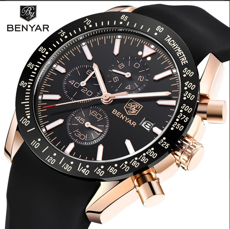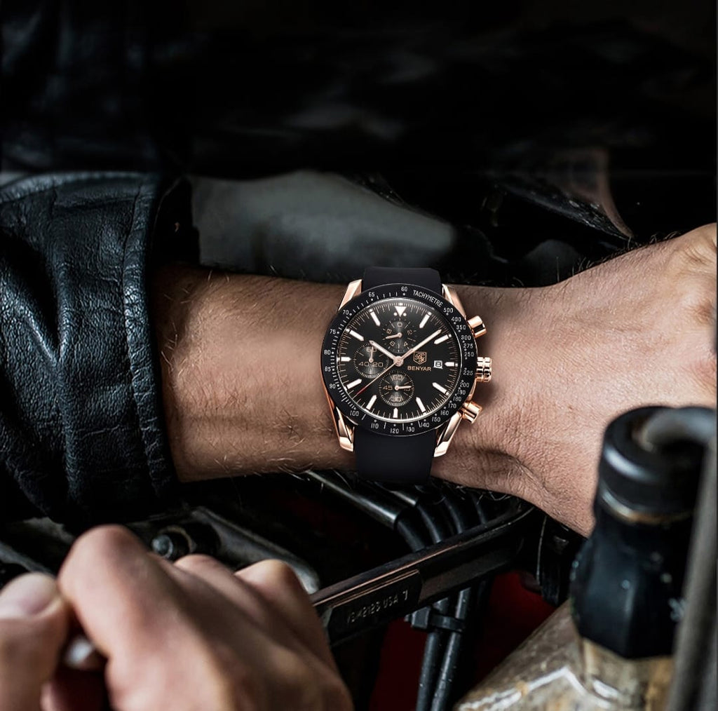 Fashion Men's Quartz Chronograph Waterproof Silicone Watches Business Casual Sport Design Wrist Watch for Men Father Son Black Blue Rose Gold