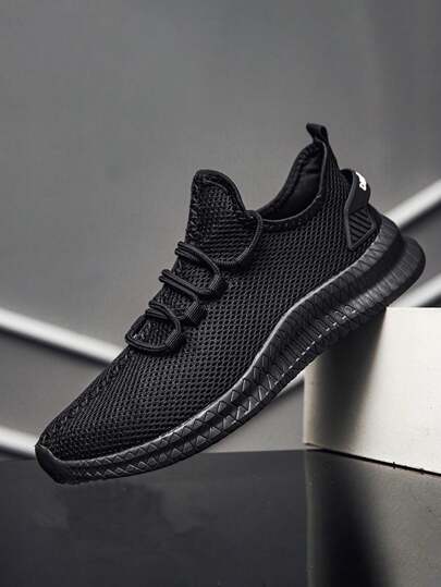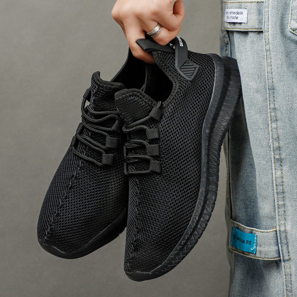 New Men's Shoes Lightweight Breathable Mesh Fashion Sneakers Black Walking Shoes Large Size New Monochrome Sneakers.