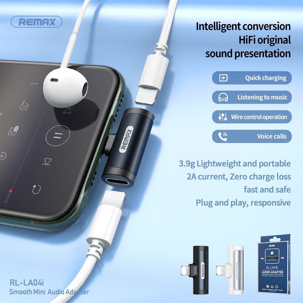 Remax Audio Adaptor RL- LA04i dual iPhone interface Charging Listening to Music | TUZZUT Qatar Online Shopping Order On WhatsApp Skip to content