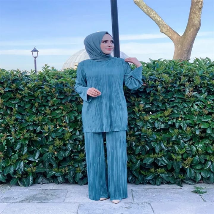 Stylish Solid Color Malaysia Plus Size Women Baju Kurung Modest Islamic Clothing Sets Pleated 2 Pcs Abaya Suit S397400 | TUZZUT Qatar Online Shopping Order On WhatsApp Skip to content