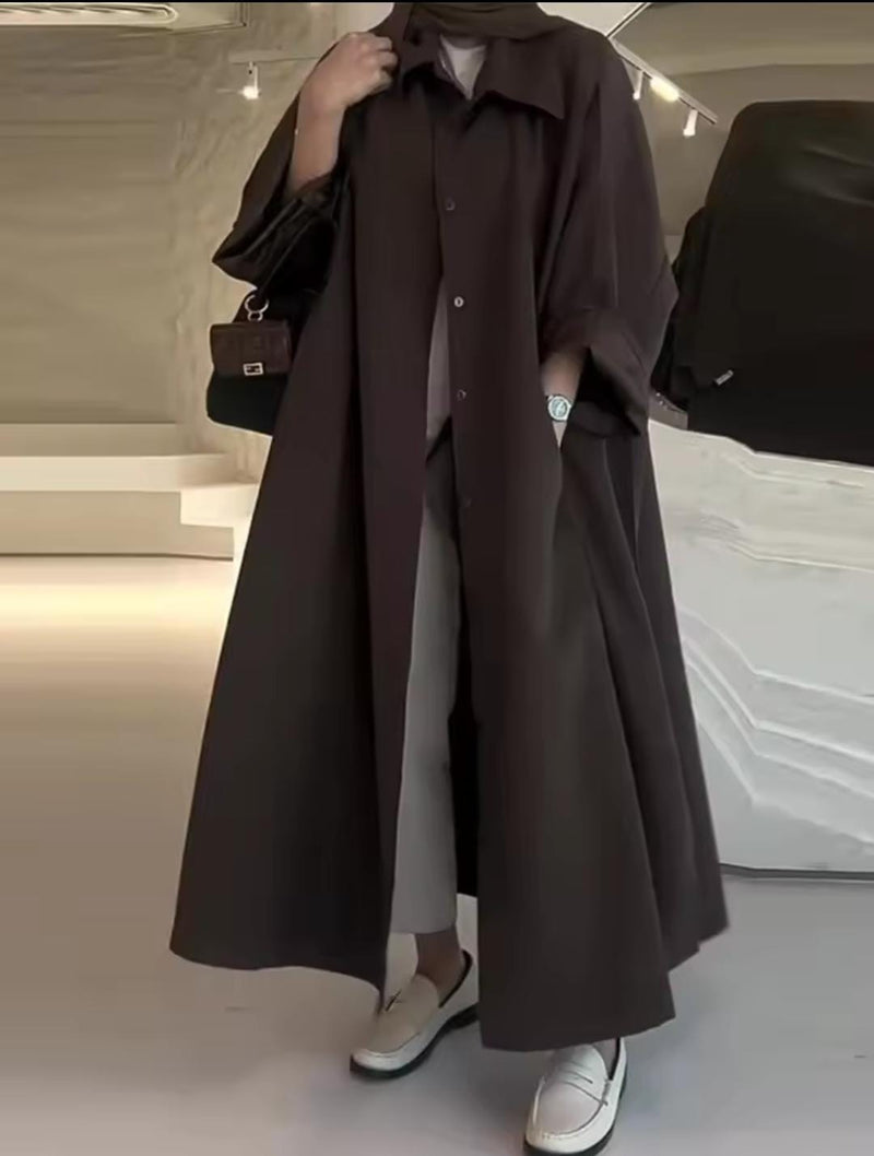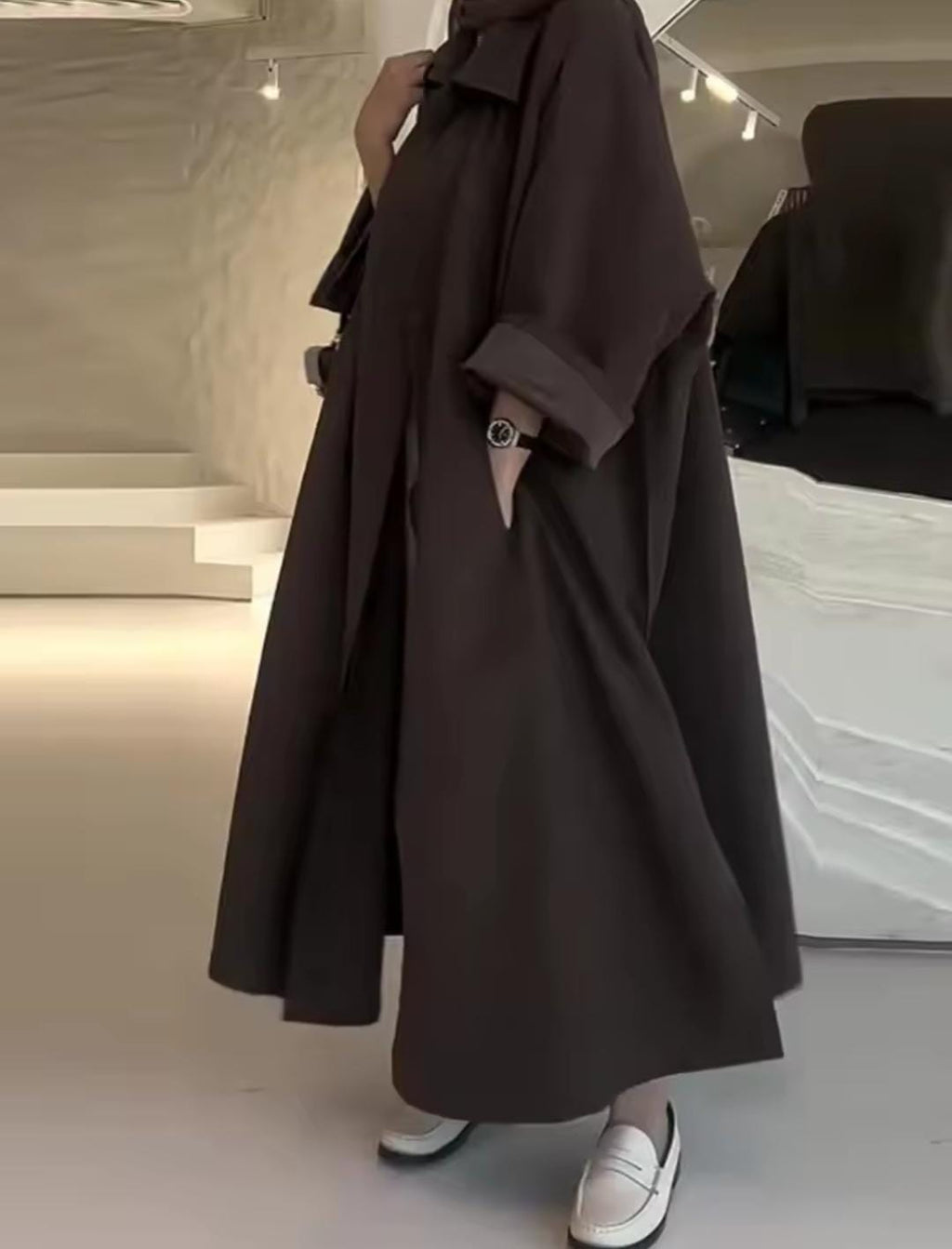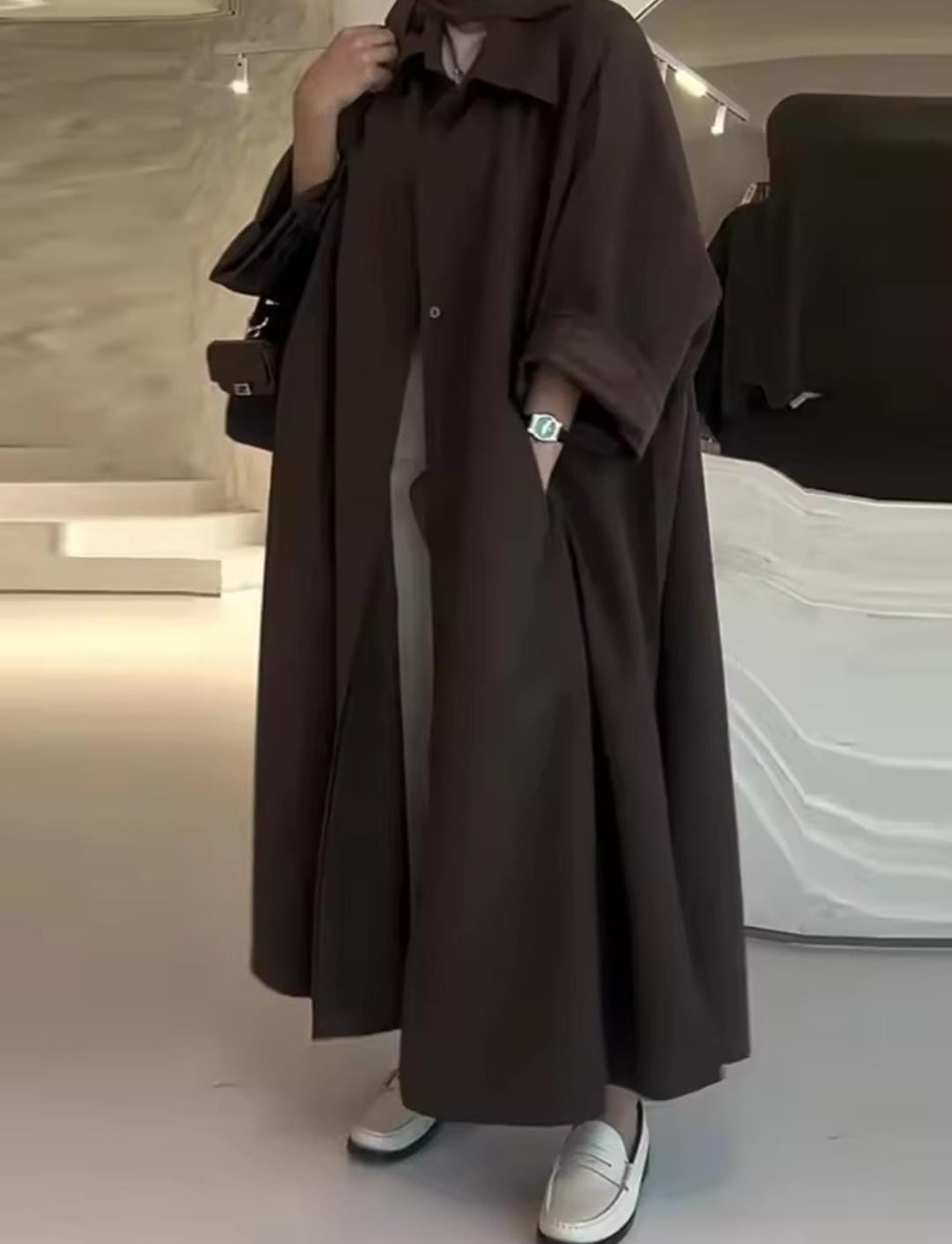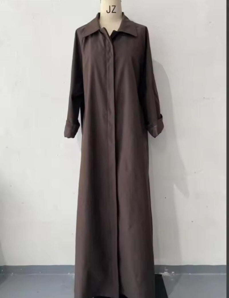 Women Abaya Trench Coat Single Breasted Casual Long Outerwear B-372416 | TUZZUT Qatar Online Shopping Order On WhatsApp Skip to content