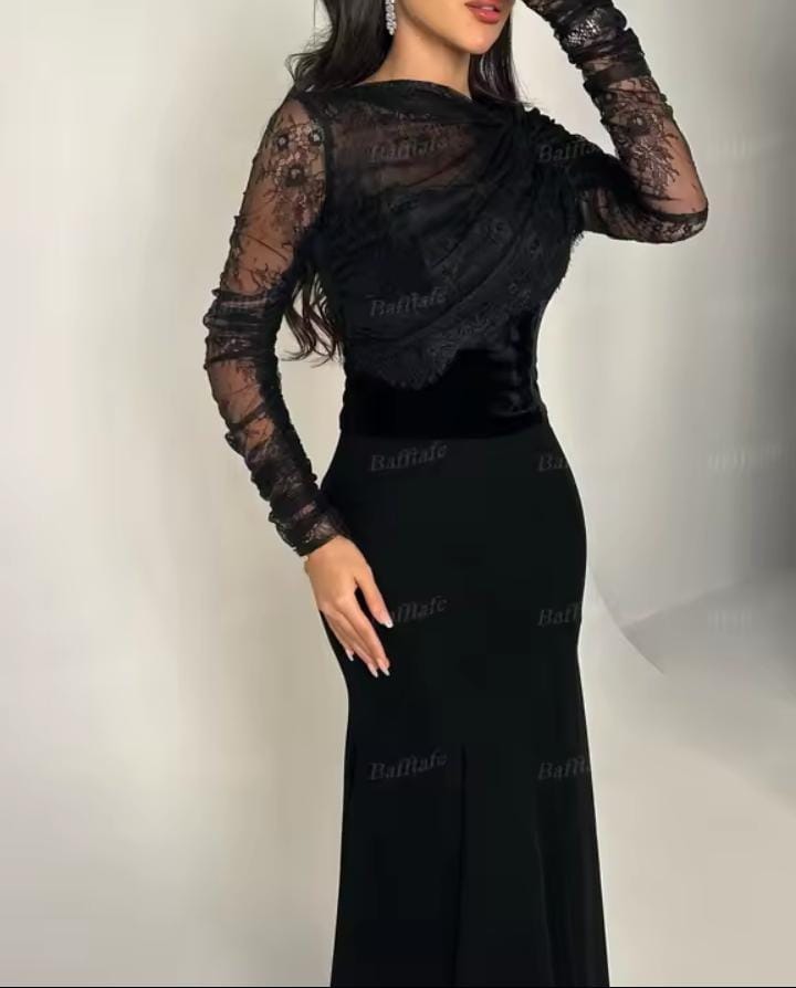 Women's Black Mermaid Evening Long Sleeve Lace Dresses S5078551