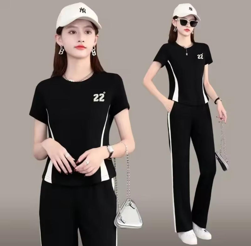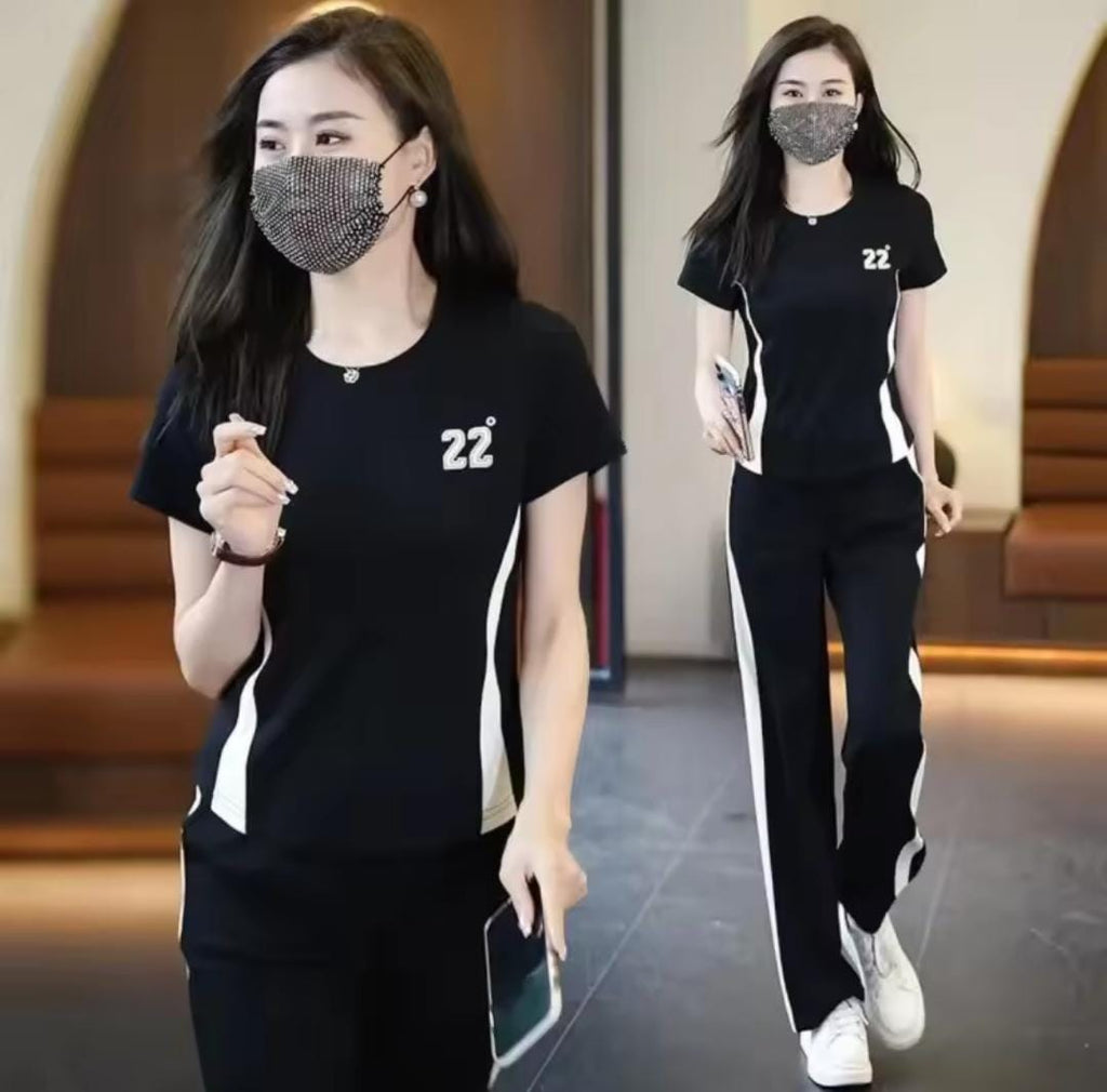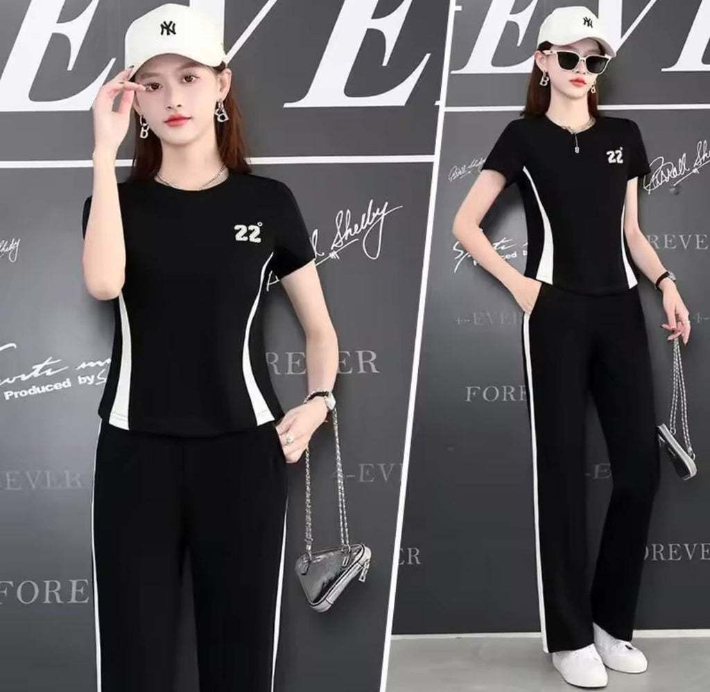 Casual Sportswear Set Women's Summer Fashionable Age-defying Short Sleeve Wide Leg Pants Two-piece Set Elegant Quality.