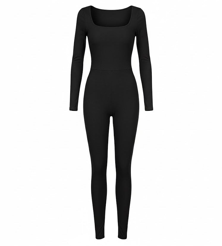 Women's Yoga Long Sleeve Jumpsuit with Tummy Control Workout Ribbed Bodysuit Square Neck Bodycon.   100144